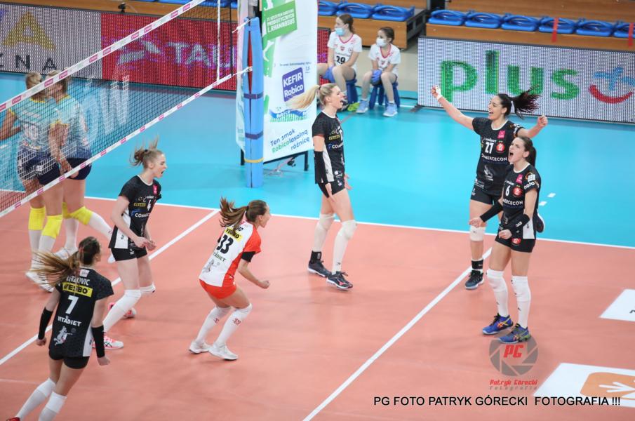 - Siatkarki Developresu SkyRes Rzeszów (błękitne koszulki) pokonały ŁKS Commercecon Łódź 3-1 i awansowały do finału Tauron Ligi (fot. Patryk Górecki)