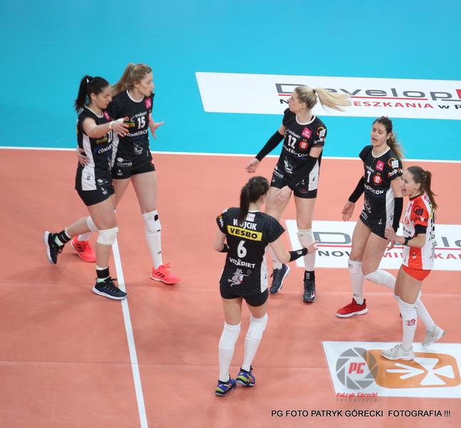 - Siatkarki Developresu SkyRes Rzeszów (błękitne koszulki) pokonały ŁKS Commercecon Łódź 3-1 i awansowały do finału Tauron Ligi (fot. Patryk Górecki)