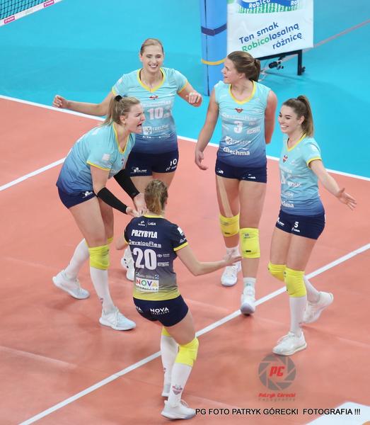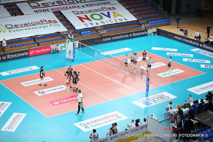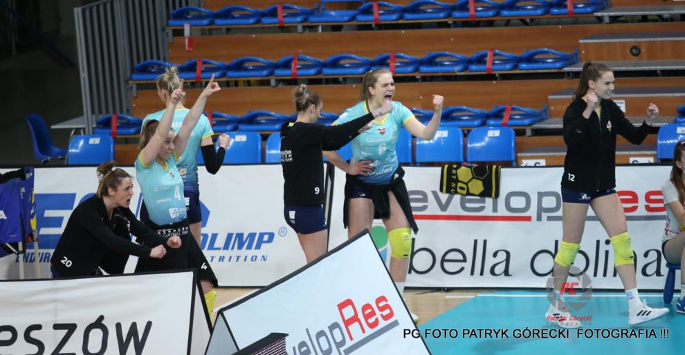 - Siatkarki Developresu SkyRes Rzeszów (błękitne koszulki) pokonały ŁKS Commercecon Łódź 3-1 i awansowały do finału Tauron Ligi (fot. Patryk Górecki)