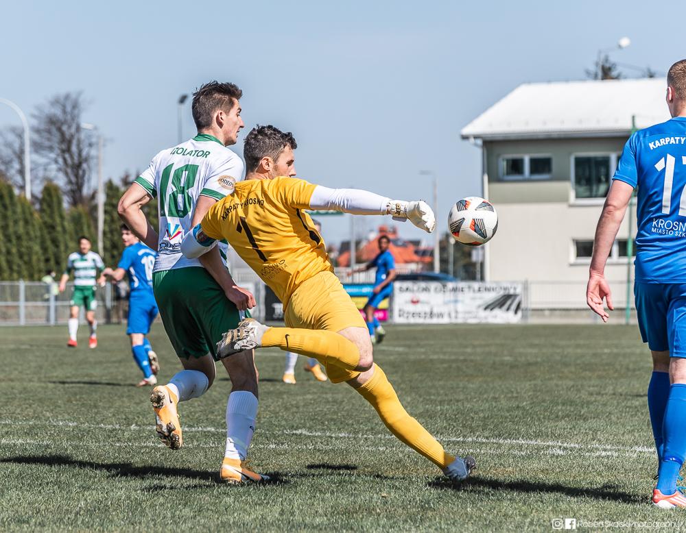 - Karpaty Krosno w meczu 1. kolejki grupy mistrzowskiej 4 ligi podkarpackiej pokonali na wyjeździe Izolator Boguchwała 1-0 (fot. Robert Skalski)