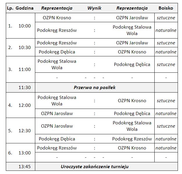 Już w czerwcu, w turnieju organizowanym przez Podokręg Rzeszów zmierzą się dziewczęta do lat 12, a całość zmagań zakończy rywalizacja chłopców do lat 11 w Jarosławiu. Początek sobotniego turnieju o g. 10:00, a harmonogram prezentujemy poniżej.