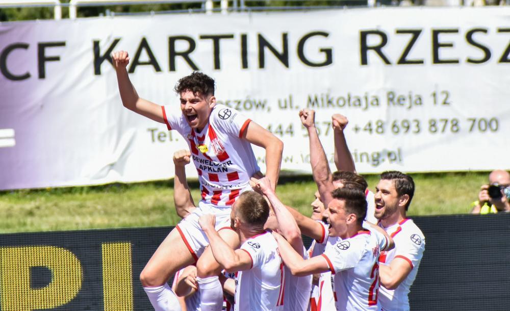 - Piłkarze Apklan Resovii wygrali z Widzewem Łódź 2-0 w ostatnim meczu na stadionie przy ul. Wyspiańskiego 22 w sezonie 2020/21. (fot. Maciej Decowski-Niemiec)