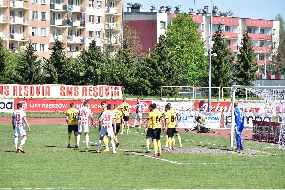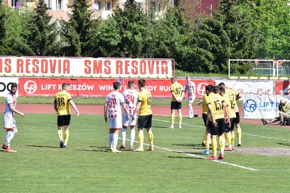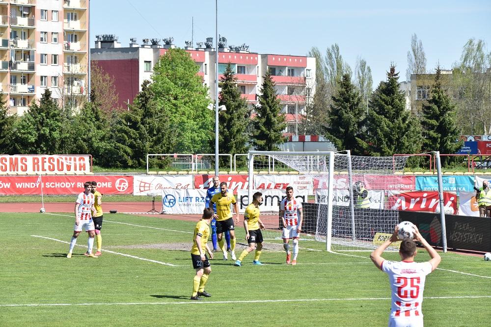 - Piłkarze Apklan Resovii wygrali z Widzewem Łódź 2-0 w ostatnim meczu na stadionie przy ul. Wyspiańskiego 22 w sezonie 2020/21. (fot. Maciej Decowski-Niemiec)