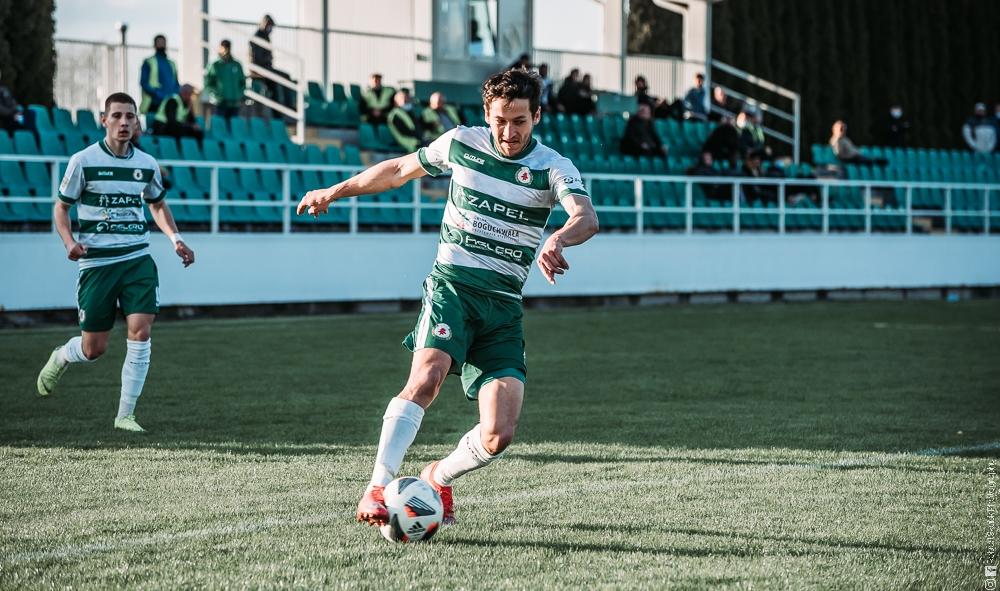 - Izolator Boguchwała (biało-zielone stroje) zremisował z Głogovią Głogów Małopolski 2-2 (fot. Robert Skalski)