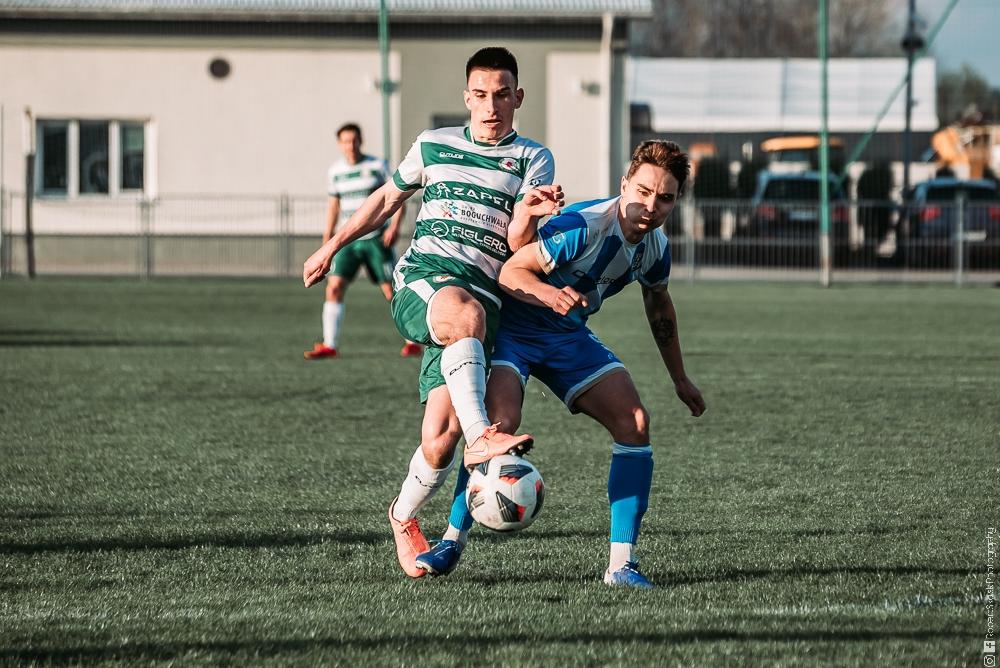 - Izolator Boguchwała (biało-zielone stroje) zremisował z Głogovią Głogów Małopolski 2-2 (fot. Robert Skalski)