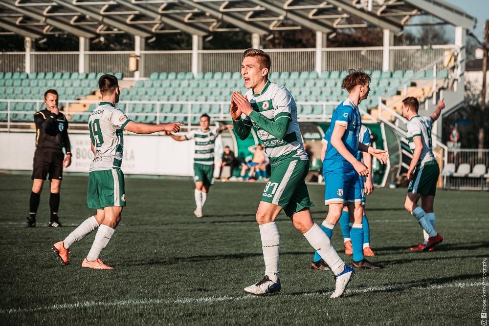 - Izolator Boguchwała (biało-zielone stroje) zremisował z Głogovią Głogów Małopolski 2-2 (fot. Robert Skalski)