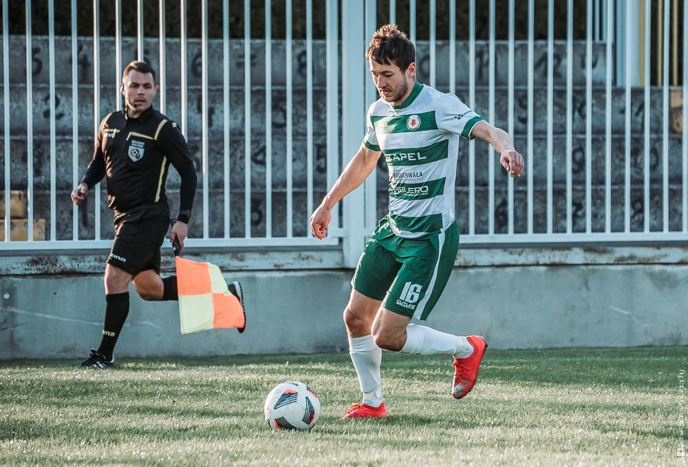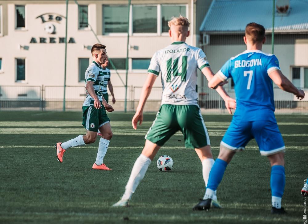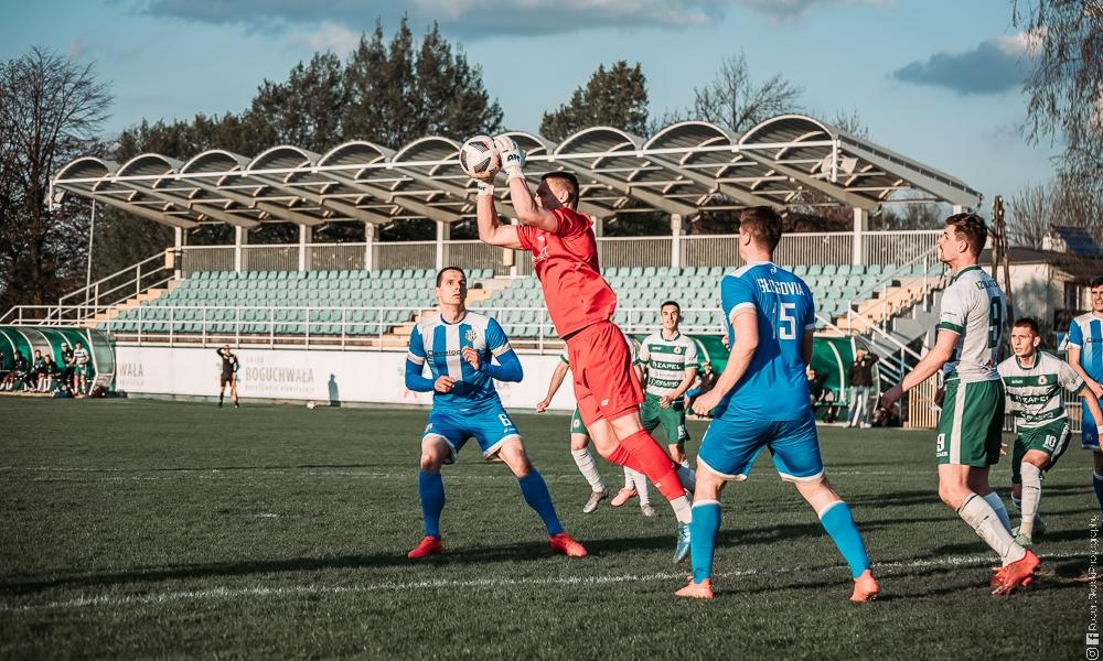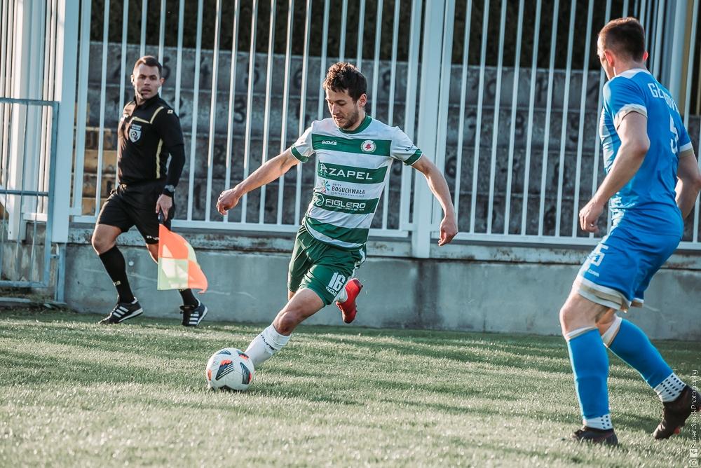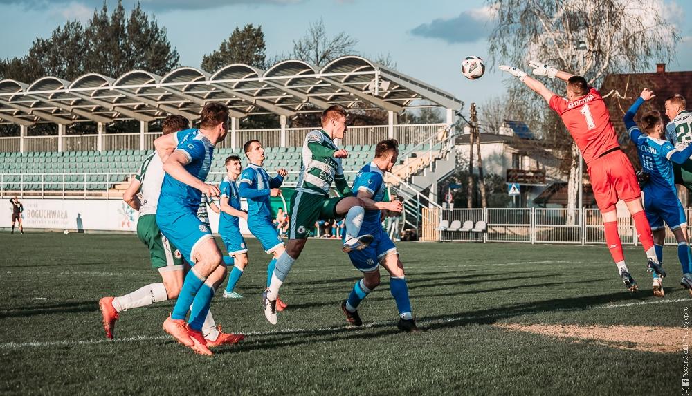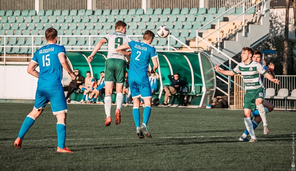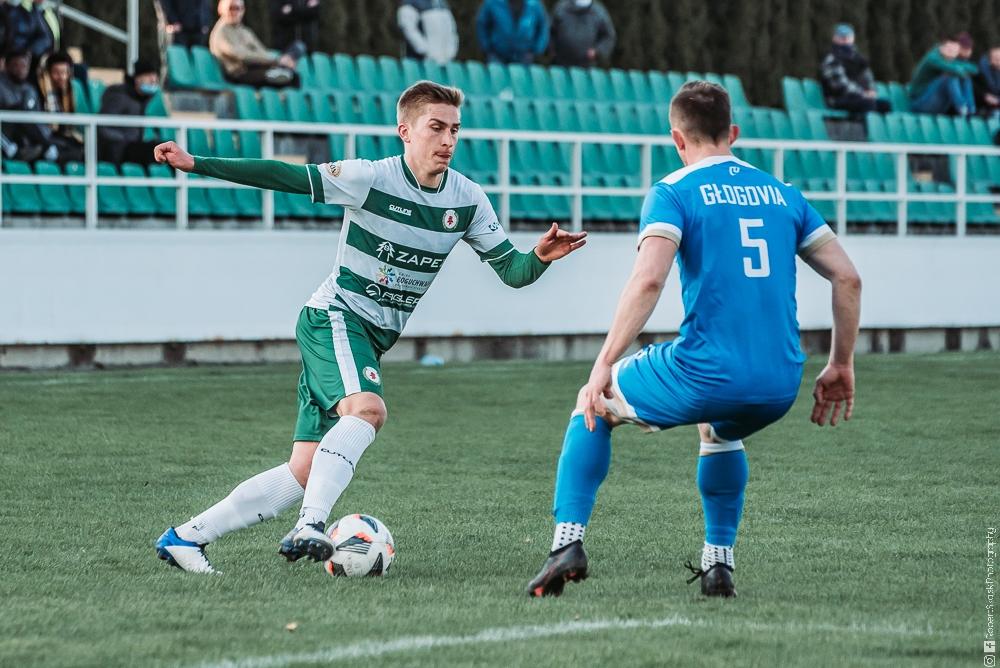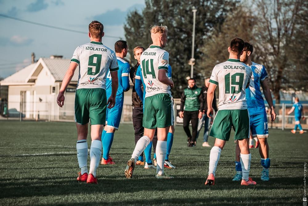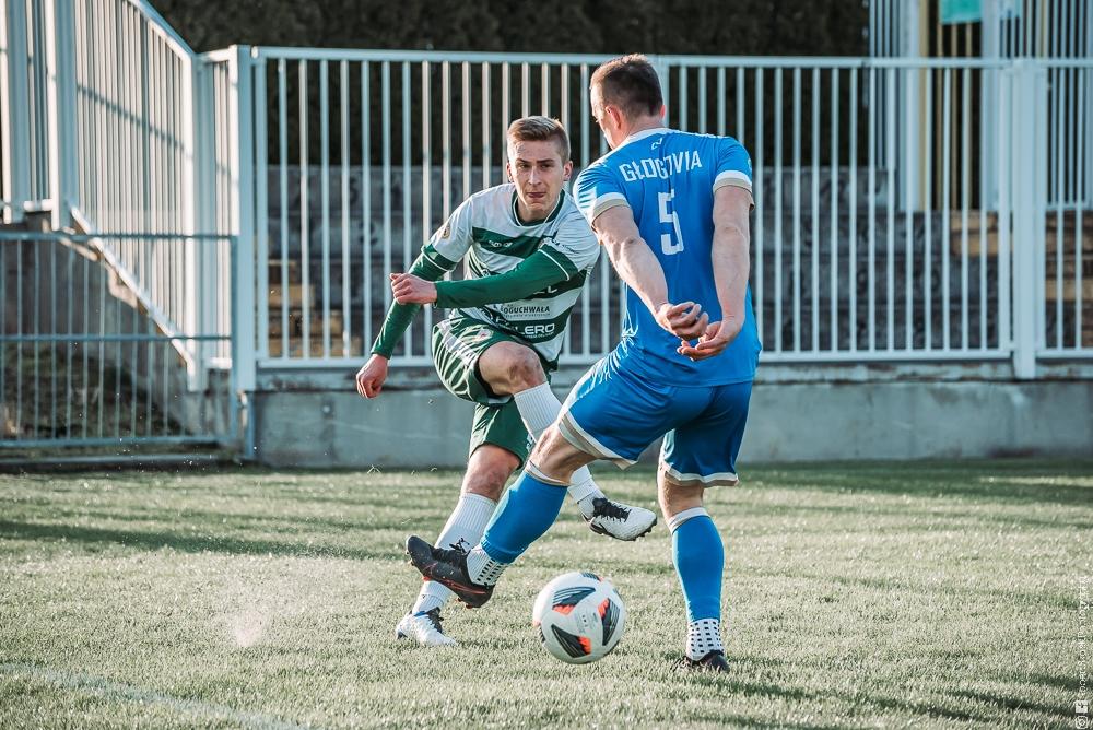 - Izolator Boguchwała (biało-zielone stroje) zremisował z Głogovią Głogów Małopolski 2-2 (fot. Robert Skalski)