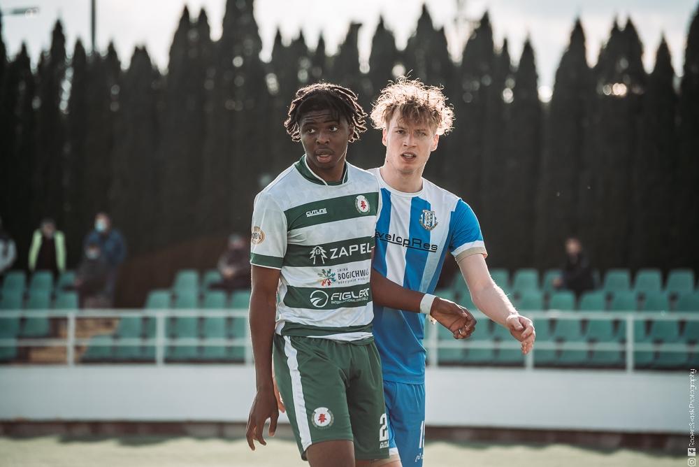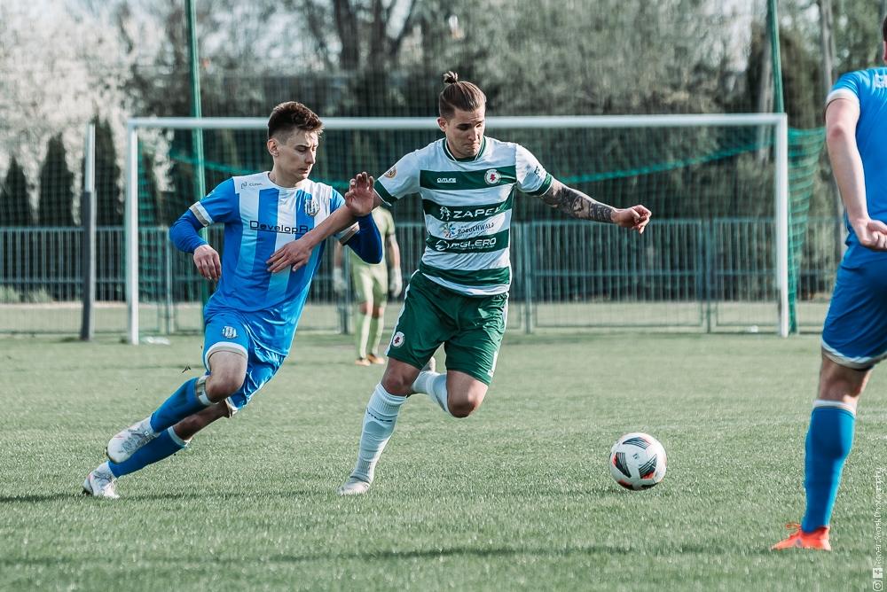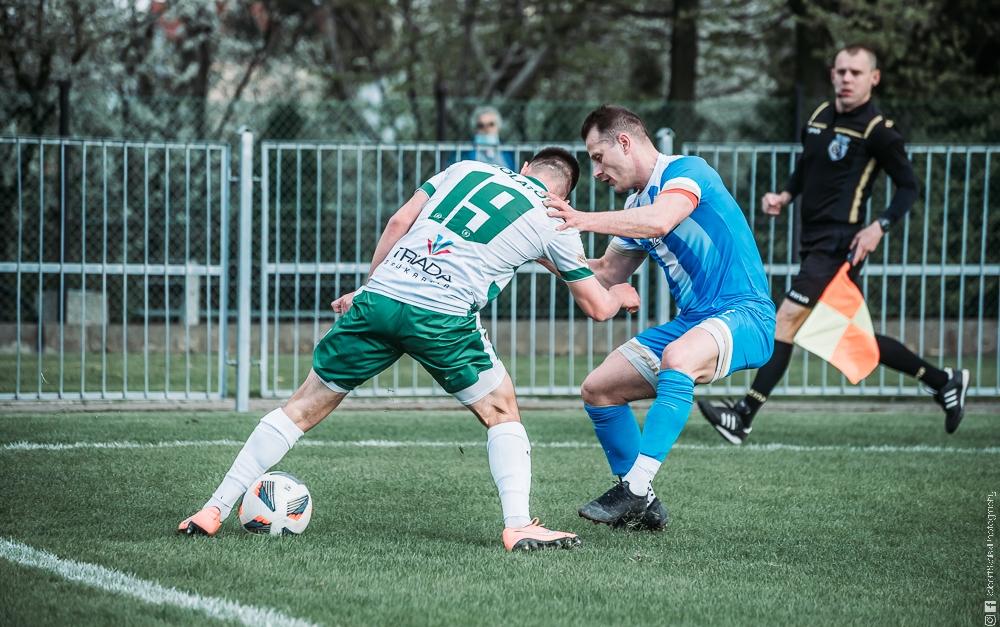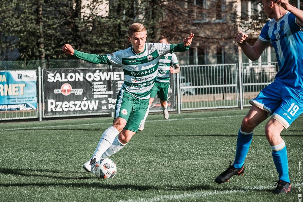 - Izolator Boguchwała (biało-zielone stroje) zremisował z Głogovią Głogów Małopolski 2-2 (fot. Robert Skalski)
