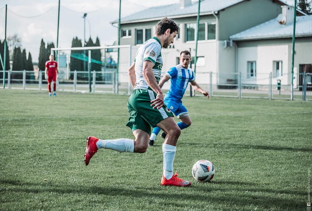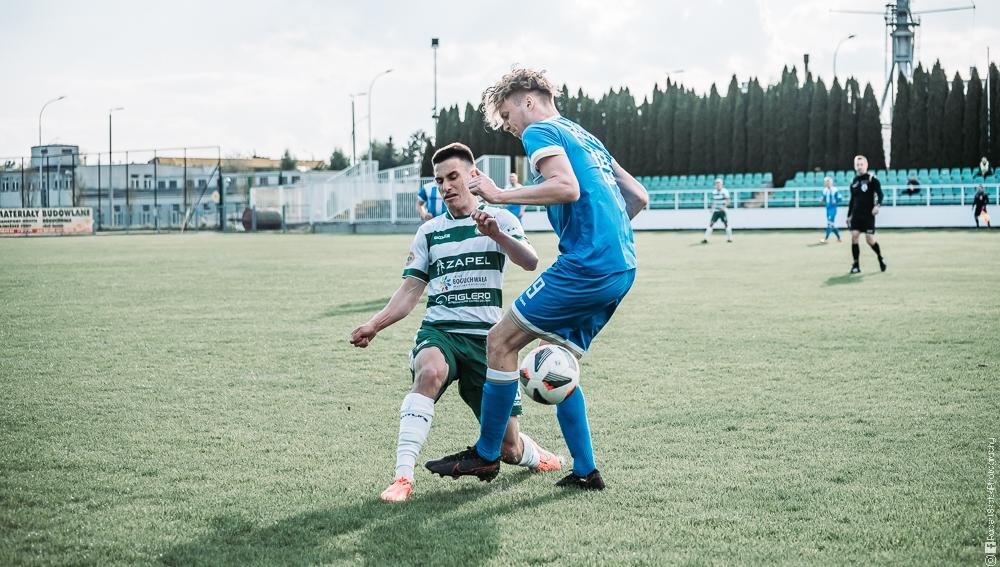 - Izolator Boguchwała (biało-zielone stroje) zremisował z Głogovią Głogów Małopolski 2-2 (fot. Robert Skalski)