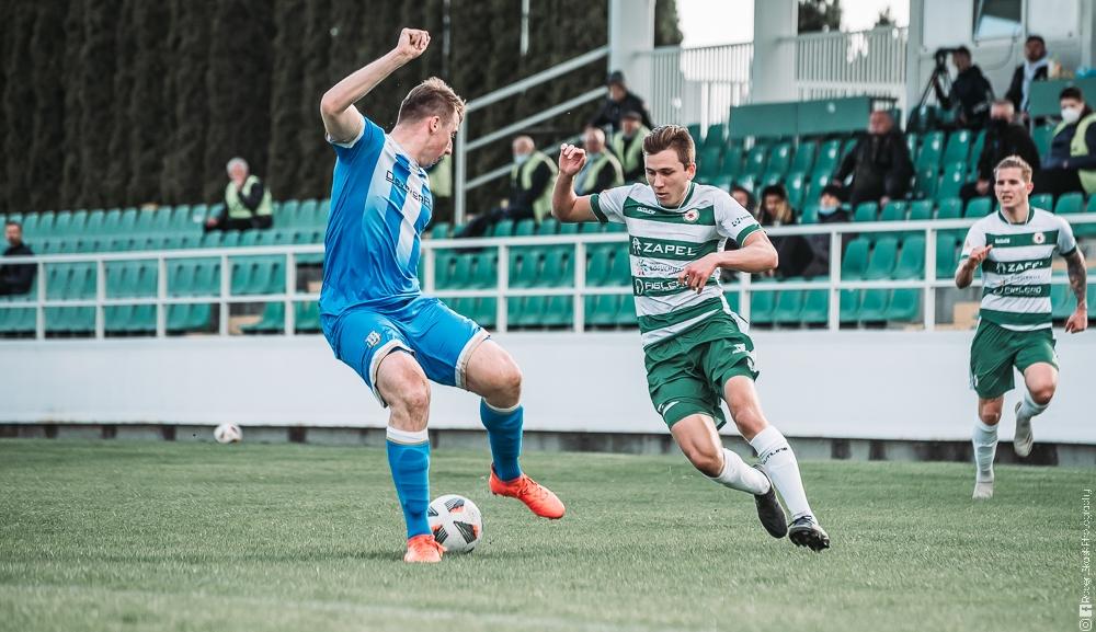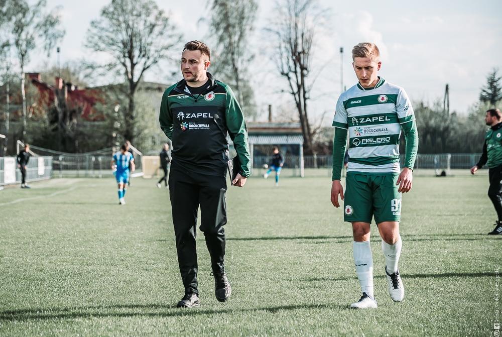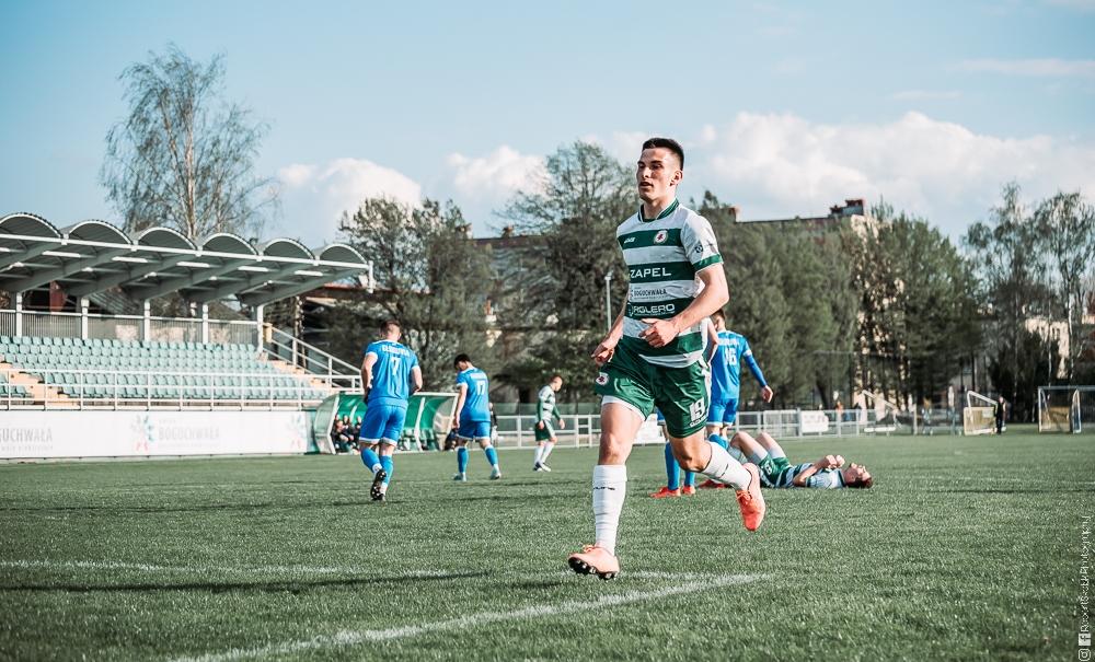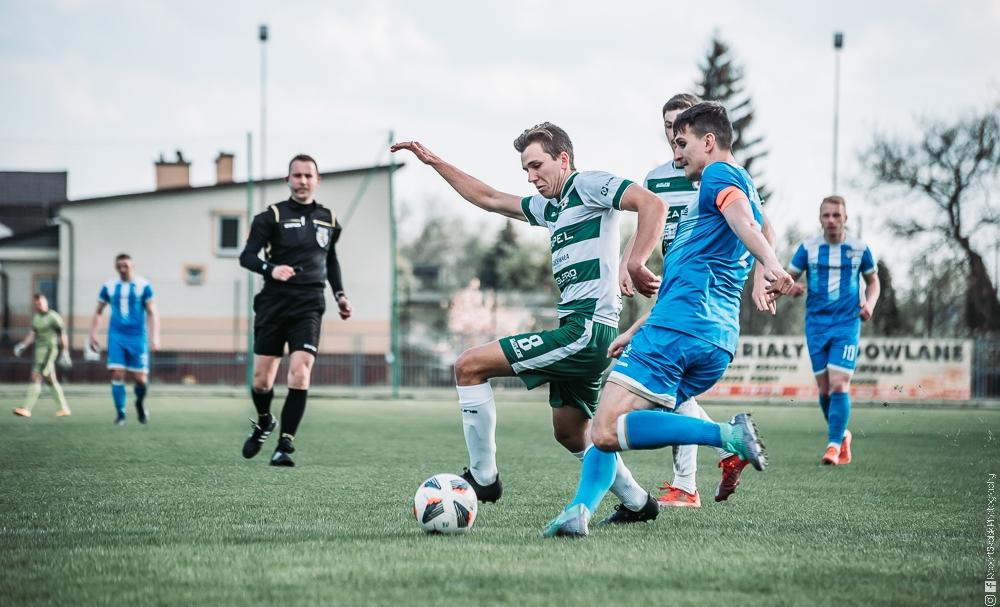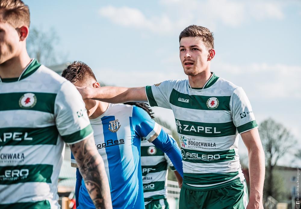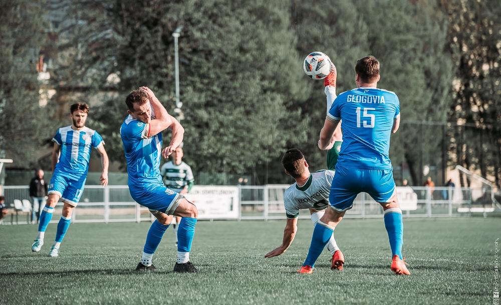 - Izolator Boguchwała (biało-zielone stroje) zremisował z Głogovią Głogów Małopolski 2-2 (fot. Robert Skalski)