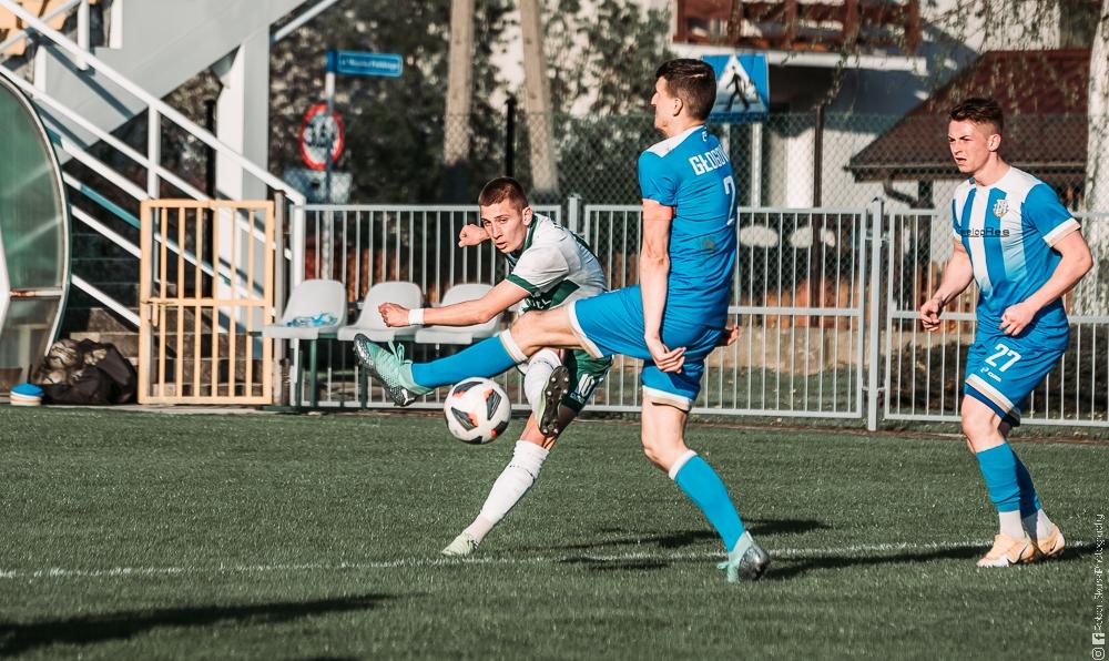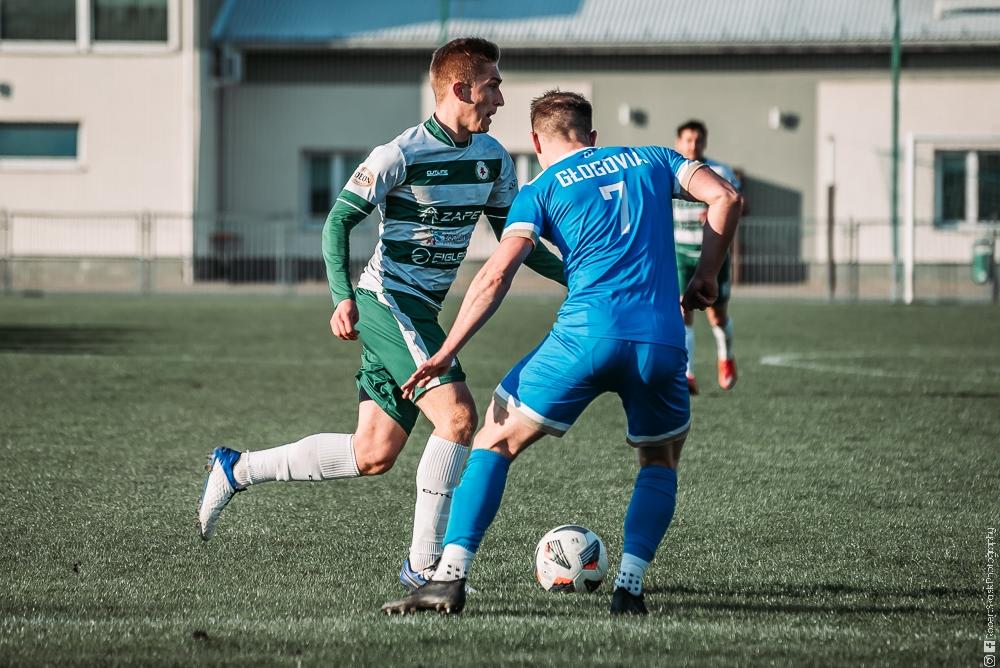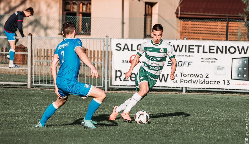 - Izolator Boguchwała (biało-zielone stroje) zremisował z Głogovią Głogów Małopolski 2-2 (fot. Robert Skalski)