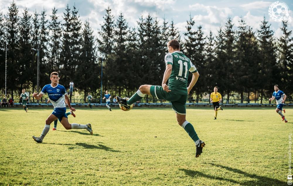 - Wisłoka Dębica (zielone stroje) pokonała Wisłok Wiśniowa i awansowała do wojewódzkiej fazy Pucharu Polski (fot. Robert Skalski/Podkarpacki Związek Piłki Nożnej)