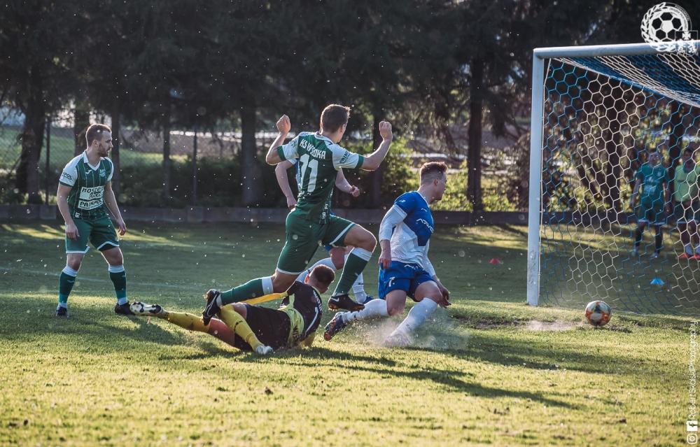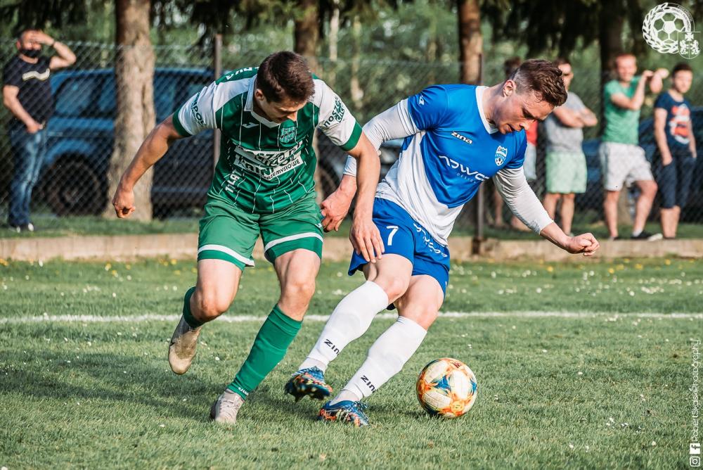 - Wisłoka Dębica (zielone stroje) pokonała Wisłok Wiśniowa i awansowała do wojewódzkiej fazy Pucharu Polski (fot. Robert Skalski/Podkarpacki Związek Piłki Nożnej)