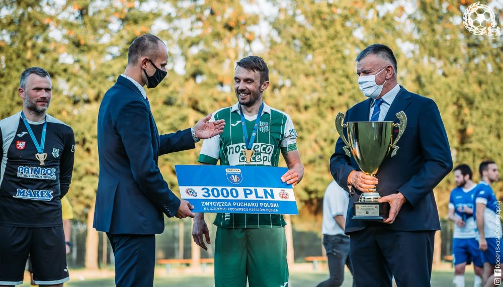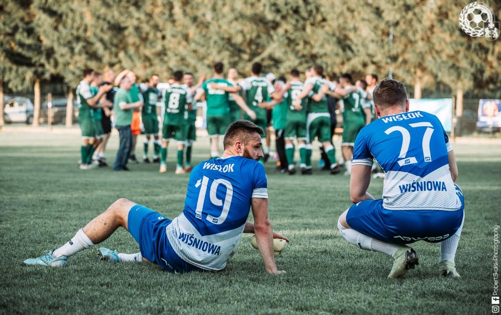 - Wisłoka Dębica (zielone stroje) pokonała Wisłok Wiśniowa i awansowała do wojewódzkiej fazy Pucharu Polski (fot. Robert Skalski/Podkarpacki Związek Piłki Nożnej)