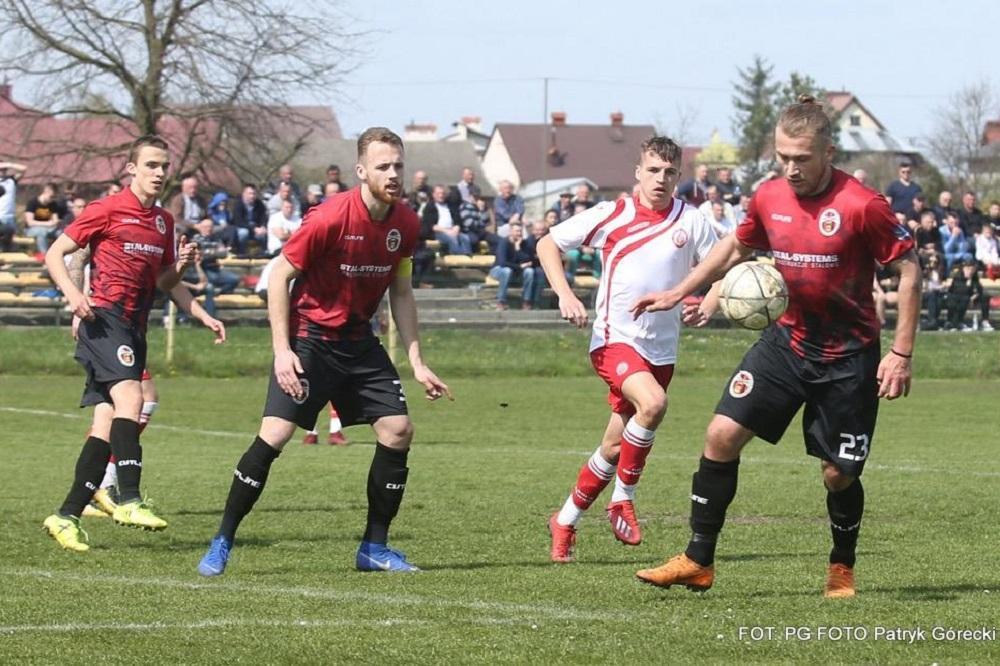 Dwie minuty później Ernest Skrzyński zdecydował się na uderzenie zza pola karnego i goście wyszli na dwu bramkowe prowadzenie. W kolejnych minutach znów lepiej prezentowali się gospodarze i w trzeciej minucie doliczonego czasu gry w pierwszej połowie Kamil Bała zdobył gola kontaktowego.