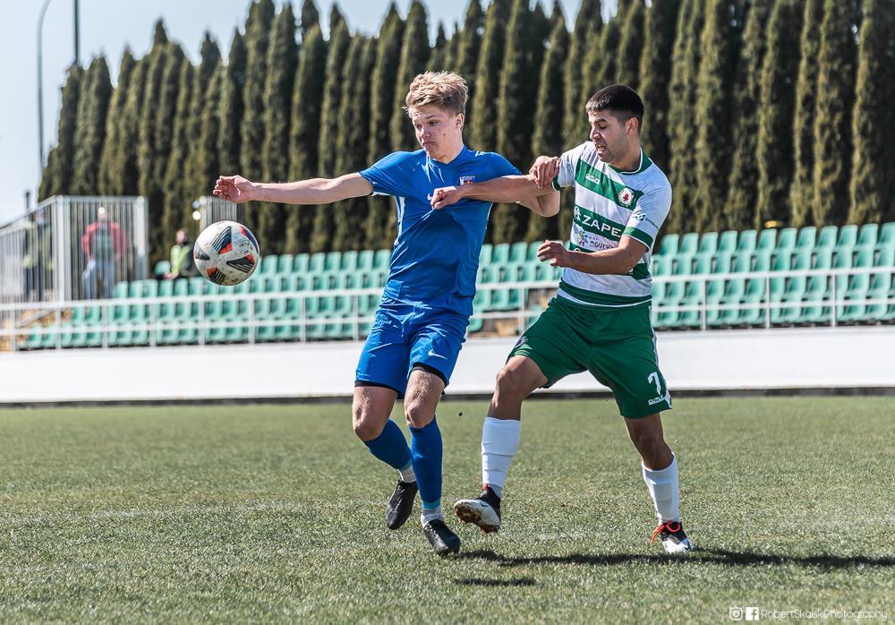 Karpaty Krosno (niebieskie stroje) w Kamieniu zdobyły tylko punkt (fot. Robert Skalski / archiwum)