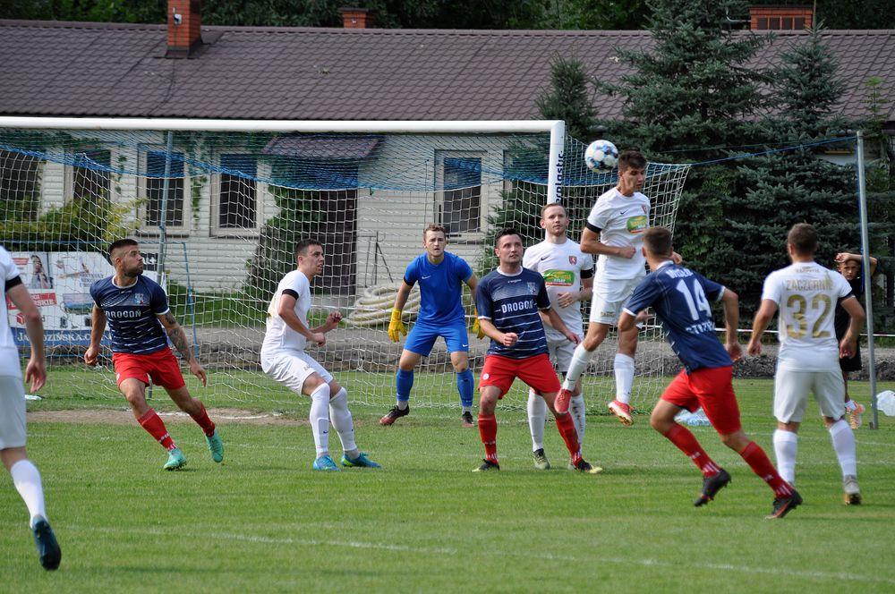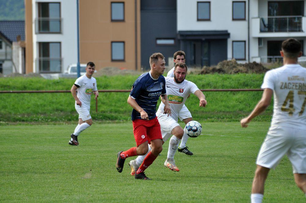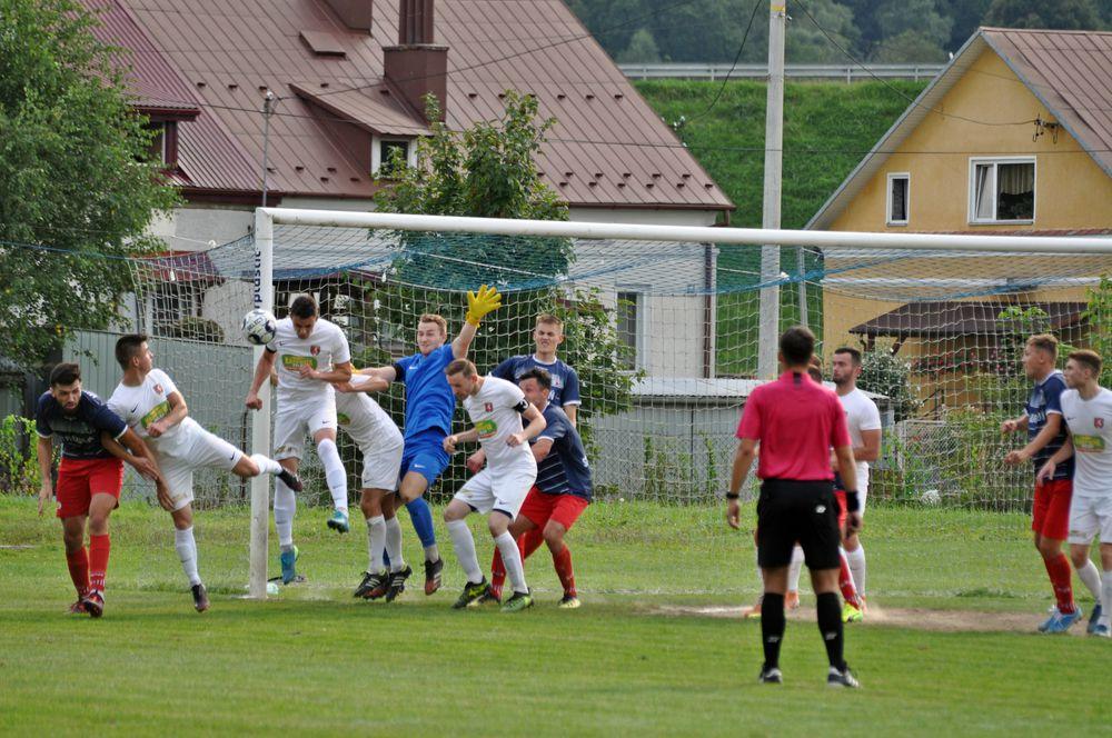 - Piłkarze Wisłoka Strzyżów (granatowo-czerwone stroje) przegrali przed własną publicznością z KS Zaczernie 1-2 w meczu rzeszowskiej klasy okręgowej / fot. Tomasz Ciombor