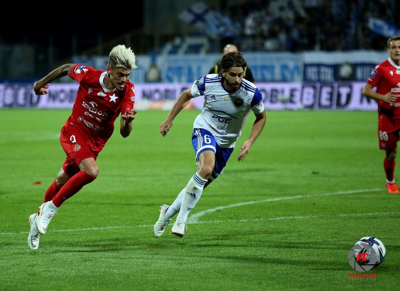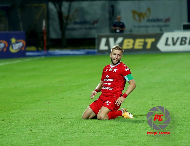 - Piłkarze PGE Stali Mielec (białe koszulki) pokonali na stadionie przy ulicy Solskiego 1 Wisłę Kraków (fot. Patryk Górecki)