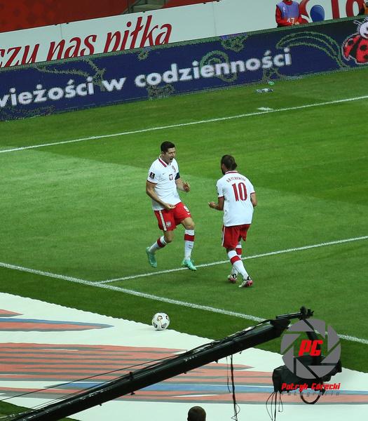 12/64 - Reprezentacja Polski po bramkach Roberta Lewandowskiego, Adama Buksy, Grzegorza Krychowiaka oraz Karola Linettego pokonała Albanię. Mecz na PGE Narodowym zakończył się wynikiem 4-1 (fot. Patryk Górecki)