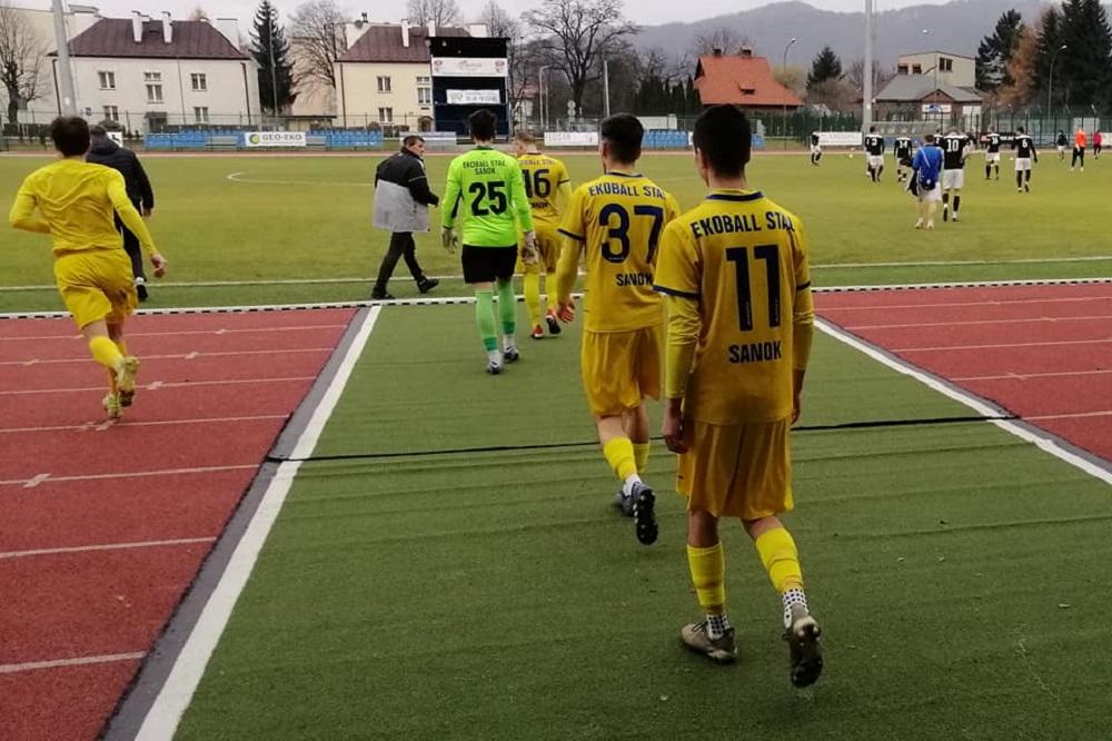 Od początku meczu stroną dominującą byli gospodarze w starciu z Piastem Tuczempy. Zaraz po rozpoczęciu spotkania piłkarze Ekoball Stali Sanok wyszli dwóch na jednego, ale Damian Niemczyk oddał strzał zamiast zamiast podać do kolegi. W 32. minucie Szymon Słysz zdecydował się na indywidualną akcje i strzałem po ziemii pokonał Dominika Jakiela. Do przerwy powinien być remis, ale uderzenie Przemysława Zielińskiego wybronił Mateusz Jagniszczak.