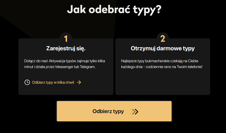 To bardzo łatwy proces, który został maksymalnie uproszczony. Na portalach społecznościowych pojawiają się reklamy związane z typami premium, więc wystarczy się z nimi skontaktować przez właśnie jedną z nich. Można również wejść bezpośrednio na stronę premiumtypy.pl i tam wybrać odpowiednią dla siebie metodę komunikacji. Premium Typy są dostępne na Messengerze oraz Telegramie, więc nikt nie powinien mieć kłopotu z komunikacją. Na czacie będziemy rozmawiać z konsultantem, który zapewni nam otrzymanie typów.