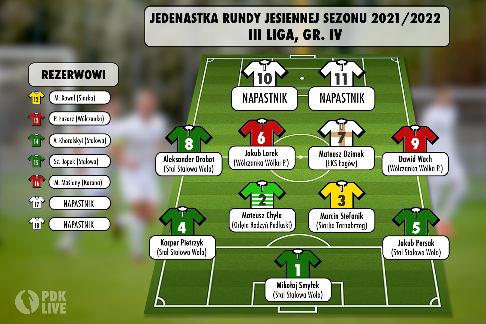 Rezerwowywmi w jedenastce rudny jesiennej sezonu 2021/2022 w 3 lidze gr. IV zostaną Szymon Jopek ze Stali Stalowa Wola i Maciej Maślany z WATKEM Korony Rzeszów.