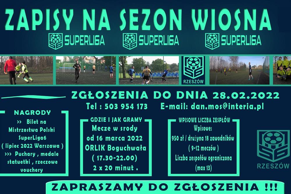 W rundzie wiosennej SuperLigi Szóstek Rzeszów udział weźmie 13 ekip. Rozgrywki rozpoczną się już w środę 16 marca. Spotkania będą odbywać się w każdą środę między godziną 17:30 a 22 na orliku w Boguchwale.