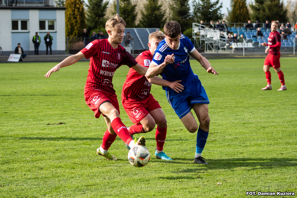 Końcówka pierwszej połowy przyniosła nieoczekiwany zwrot akcji. W 44. minucie akcja utworzyła się po stronie TEXOM Sokoła Sieniawa. Oziębło wrzucił piłkę z prawej strony, co wykorzystał Dominik Pisarek i strzelił bramkę, zapewniając wynik 1-1.
