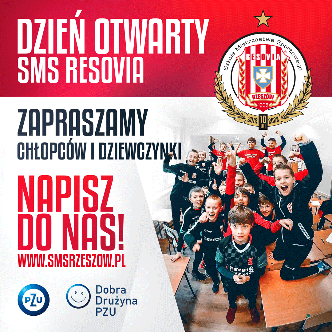 Przed nami dzień otwarty w Szkole Mistrzostwa Sportowego Resovia. Ten został zaplanowany na 19 maja 2022 roku i wtedy będzie można zobaczyć, jak wygląda i funkcjonuje szkoła. Zaproszenie skierowane jest do chłopców i dziewczynek, które w roku szkolnym 2022/2023 rozpoczną naukę w klasach 4, 5, 6 i 7 (roczniki 2012, 2011, 2010, 2009).