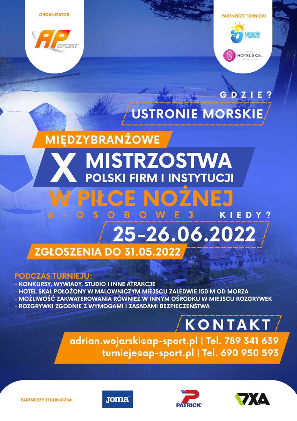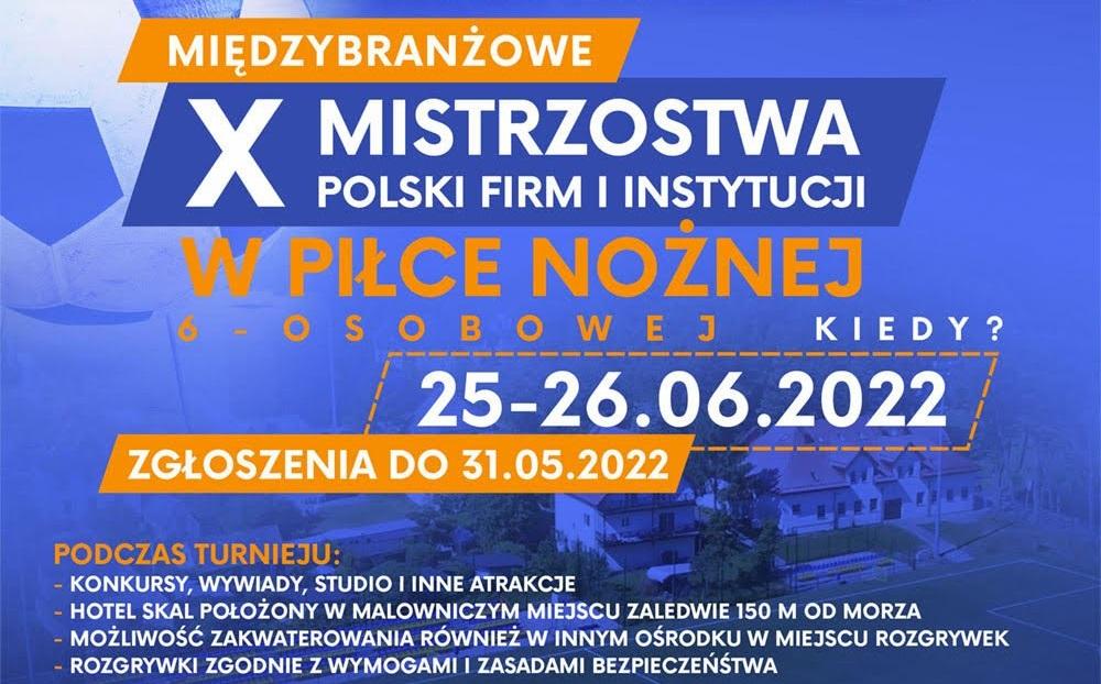 Trwają zapisy na X Międzybranżowe Mistrzostwa Polski Firm i Instytucji w piłce nożnej. Wciąż możesz dołączyć do uczestników turnieju w Ustroniu Morskim w weekend 25-26 czerwca 2022 roku.