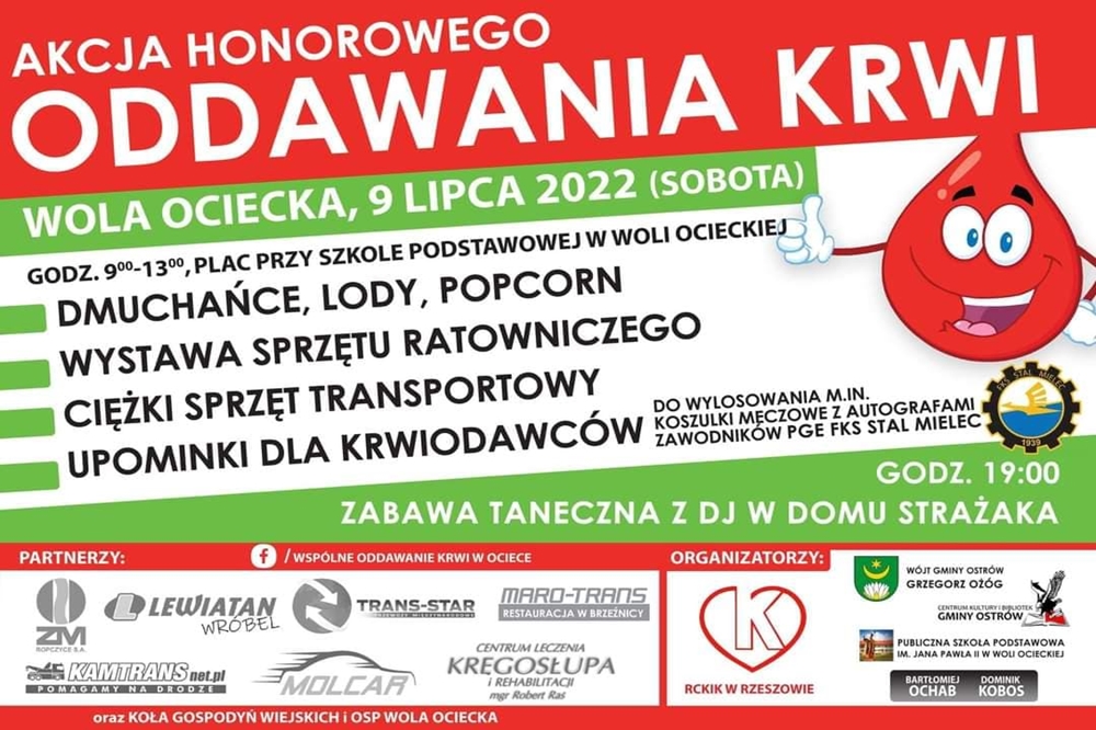 Akcja honorowego oddawania krwi odbędzie się w Woli Ocieckiej, między godzinami 9-13. Wydarzenie będzie miało miejsce przy tamtejszej szkole podstawowej, a na godzinę 19 zaplanowano zabawę taneczną z DJ w domu strażaka.