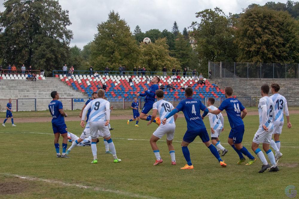 - Polonia Przemyśl (granatowe stroje) wygrała z rezerwami Stali Rzeszów w meczu 5. kolejki 4 ligi podkarpackiej. Gospodarze zwyciężyli 3-2 (fot. Grzegorz Gajdzik).