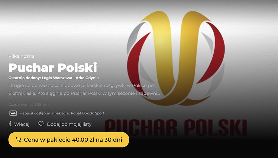 Będzie to niestety transmisja płatna - ale za 40 zł dostajecie dostęp do wszystkich wydarzeń sportowych pokazywanych na Polsat Box Go przez 30 dni. Miejmy nadzieję, że będzie można tam obejrzeć także kolejny mecz Resovii w Pucharze Polski - już w ćwierćfinale.