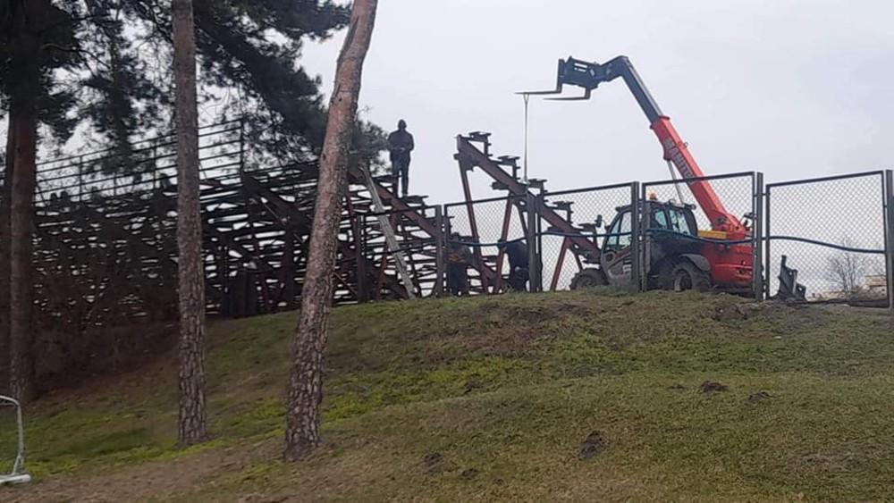 - Trwają prace budowlane na stadionie Wisłoki Dębica. Obecnie rozbierana jest duża trybuna (fot. facebook.com/wisloka1908)