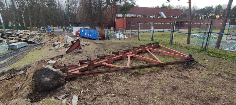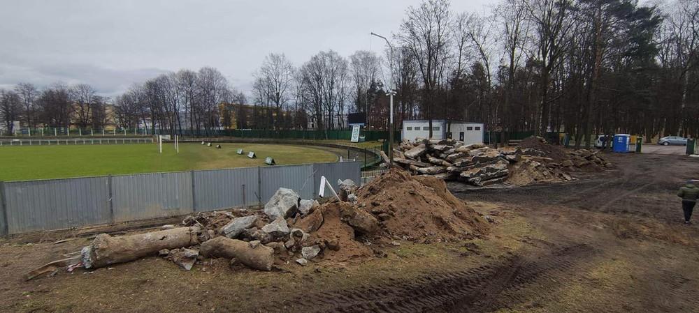 - Trwają prace budowlane na stadionie Wisłoki Dębica. Obecnie rozbierana jest duża trybuna (fot. facebook.com/wisloka1908)