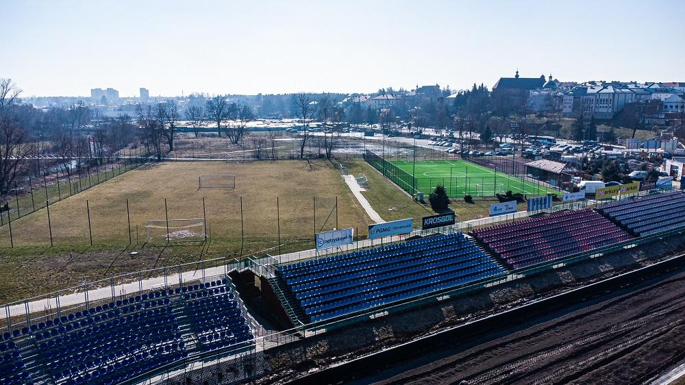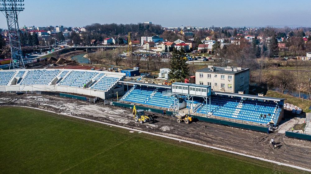 Zobaczcie jak postępują prace przy nowej trybunie na stadionie przy ul. Legionów 1 w Krośnie. Oto fotogaleria z "lotu ptaka".