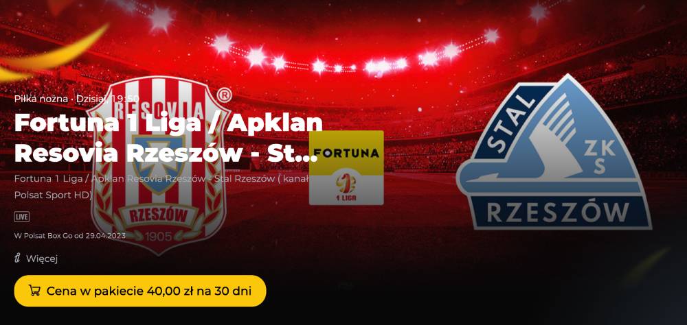 Mecz Apklan Resovia vs. Stal Rzeszów na żywo będzie można oglądać także w internecie. Stream online z tego pojedynku dostępny będzie dla abonentów Polsat Box Go (dostęp na 30 dni kosztuje 40 zł).