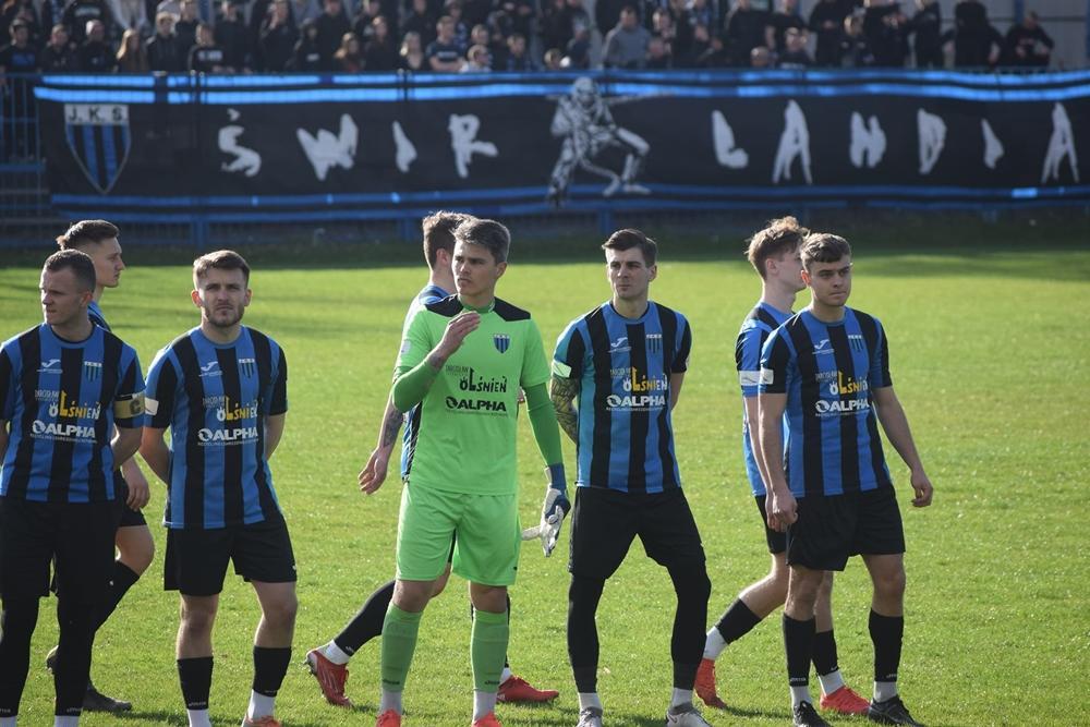 Po jednym punkcie dopisały sobie dziś drużyny JKS-u Jarosław i Karpat Krosno. W hitowym meczu na szczycie tabeli nastąpił podział punktów, a mecz zakończył się wynikiem 1-1. Co ciekawe, obie drużyny zakończyły spotkanie w dziesiatkę.