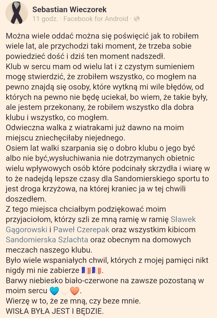 Całość komunikatu Sebastiana Wieczorka możecie przeczytać tutaj: