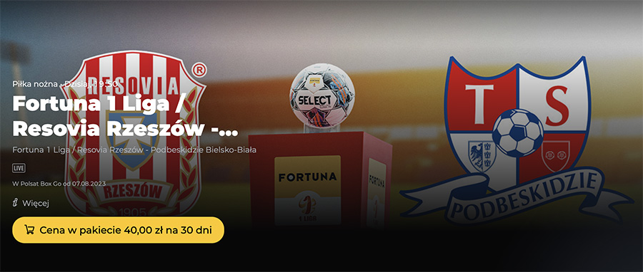 Transmisję na żywo z meczu Resovia - Podbeskidzie przeprowadzi telewizja Polsat. Mecz LIVE będzie, można oglądać jednak tylko w internecie, na Platformie Polsat Box Go.