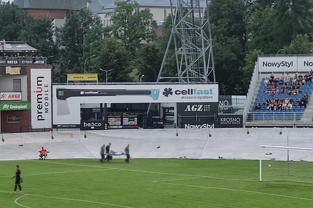Karpaty Krosno w pierwszej kolejce pokonały Wieczystą Kraków 1-0. Jednak fatalnie sezon 2023/24 rozpoczął się dla nowego napastnika "Biało-niebieskich". Karol Twardowski po starciu z Michałem Pazdanem musiał opuścić boisko na noszach.