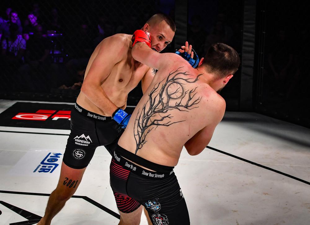 - Podczas gali Carpathian Warriors XII w Przeworsku odbyło się dziewięć pojedynków MMA i jeden w formule K1. Na zdjęciu Łukasz Ruchała i Ilia Baideckyi / fot. Anna Schiffer
