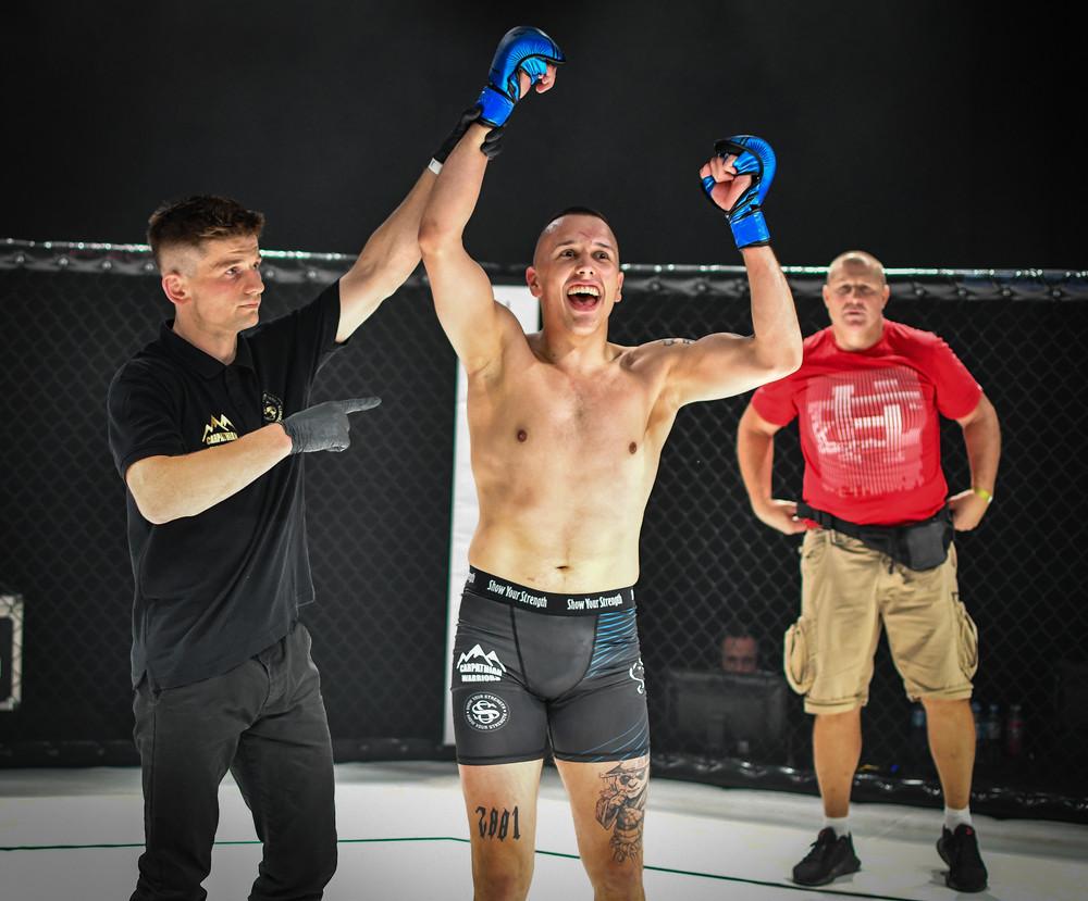 - Podczas gali Carpathian Warriors XII w Przeworsku odbyło się dziewięć pojedynków MMA i jeden w formule K1. Na zdjęciu Jakub Chorąży / fot. Anna Schiffer