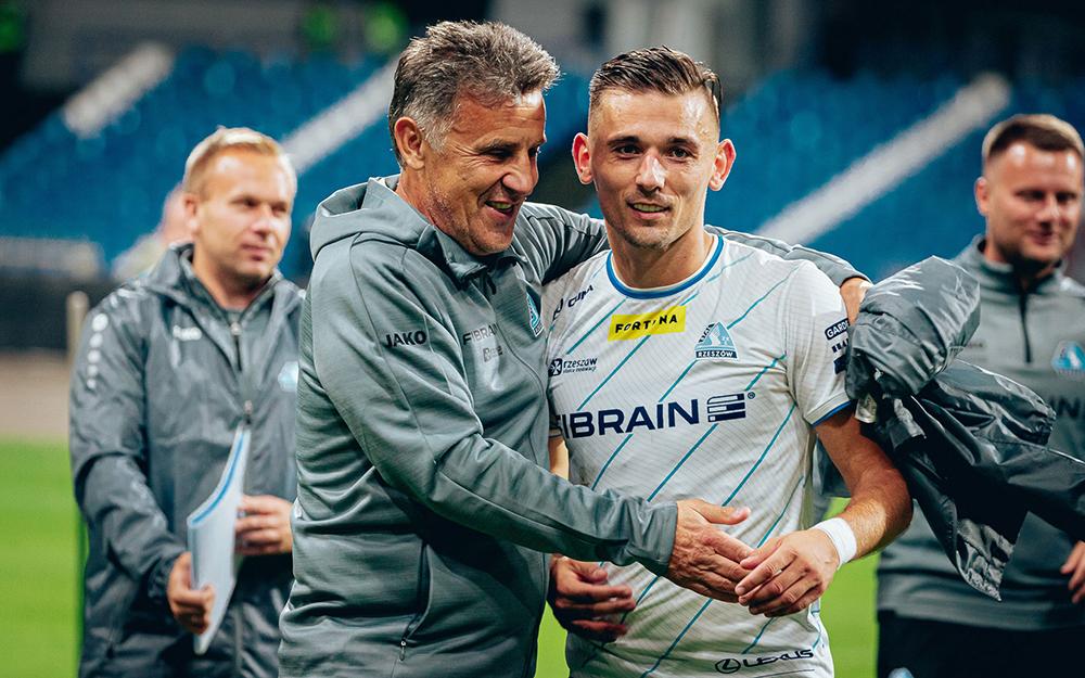 Paweł Oleksu na zdjęciu z prawej. Obok trener Marek Zub (fot. Robert Skalski / stalrzeszow.pl)