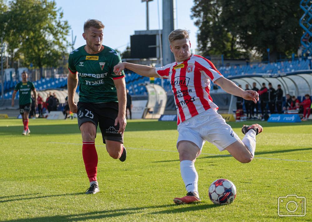 Rafał Mikulec trafił do Resovii w 2019 roku z Puszczy Niepołomice i od tamtego czasu jest kluczowym zawodnikiem "Pasiaków". W tym sezonie strzelił trzy gole - wszystkie z rzutów karnych. Transfermarkt wycenia go na ćwierć miliona Euro, czyli ponad 1 mln zł.Rafał Mikulec na zdjęciu z prawej (fot. Paweł Golonka / cwks-resovia.pl)