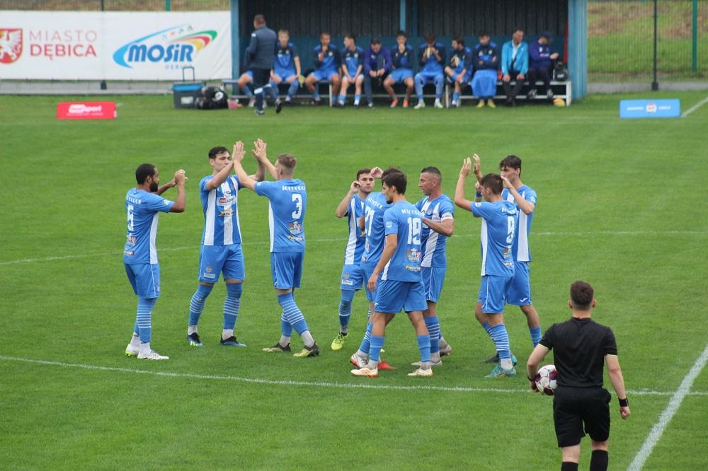 Przebieg drugiej połowy był bardzo podobny do pierwszej. Przewagę miała drużyna z Dębicy, a goście ograniczali się do kontr. W 54. minucie sytuację miał Piotr Buda, ale jego strzał pewnie wybronił Adam Polit. Przełamanie przyszło w 75. minucie. W polu karnym sfaulowany został jeden z zawodników gospodarzy. Do piłki podszedł Marcin Stefanik i pewnym strzałem w lewy dolny róg bramki otworzył wynik spotkania.