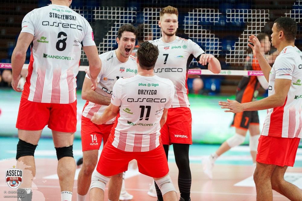 Asseco Resovia Rzeszów: Fabian Drzyzga, Yacine Louati, Jakub Kochanowski, Stephen Boyer, Klemen Cebulj, Karol Kłos, Paweł Zatorski (L) oraz Jakub Bucki, Łukasz Kozub, Torey De Falco.