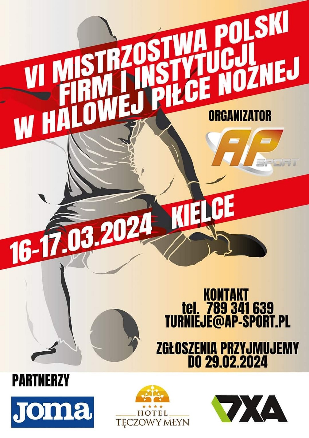 Już w weekend 16-17 marca odbędą się VI Mistrzostwa Polski Firm i Instytucji w piłce halowej. Turniej będzie miał miejsce w Kielach i wciąż trwają zapisy. Turniej będzie transmitowany na żywo na YouTube.