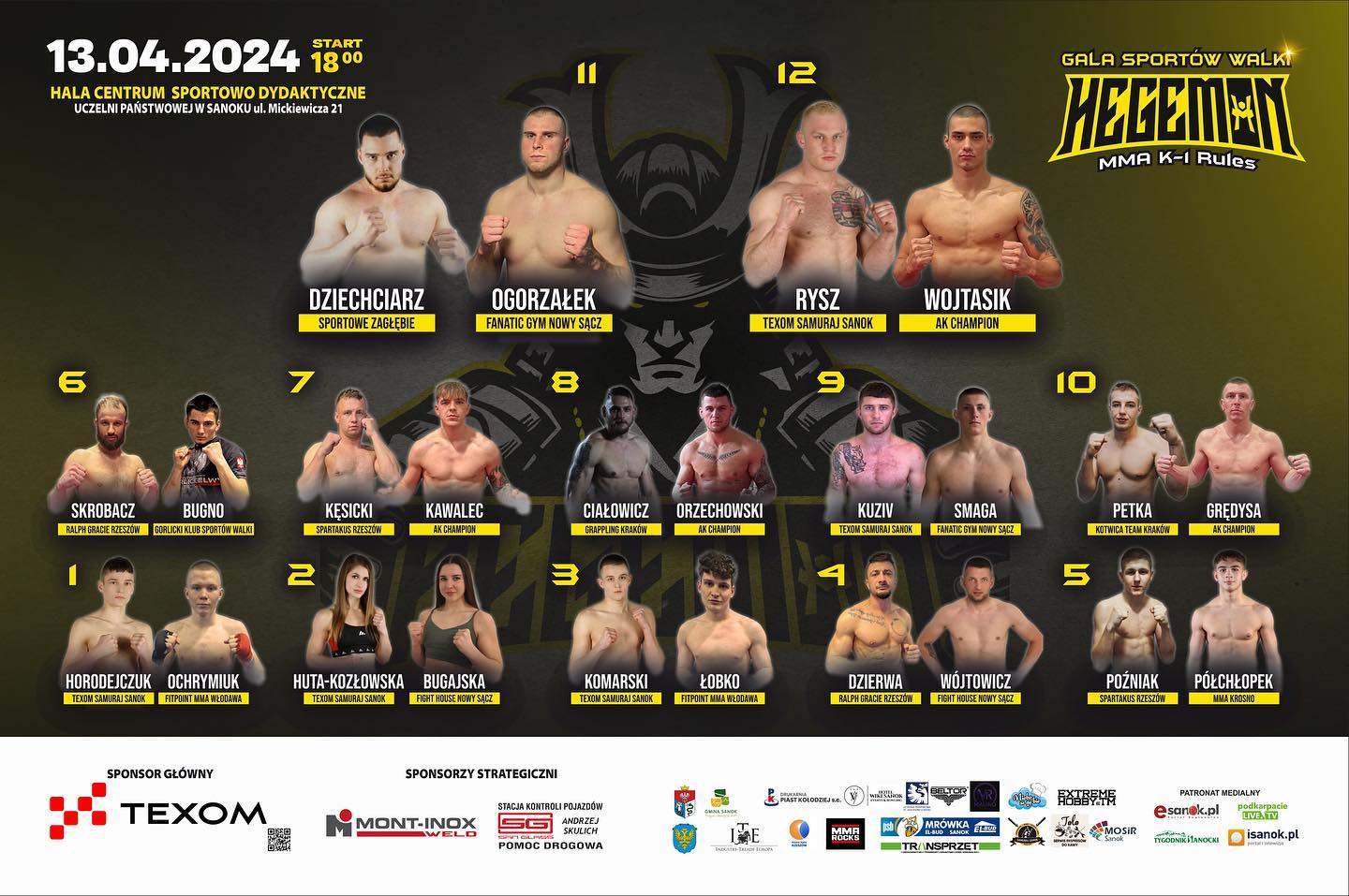 W miniony weekend organizacja Hegemon oficjalnie zadebiutowała na rynku polskiego MMA. Pierwsza gala, za zorganizowaniem której stali przedstawiciele klubu Texom Samuraj Sanok, odbyła się w hali Centrum Sportowo-Dydaktycznego Uczelni Państwowej w Sanoku.