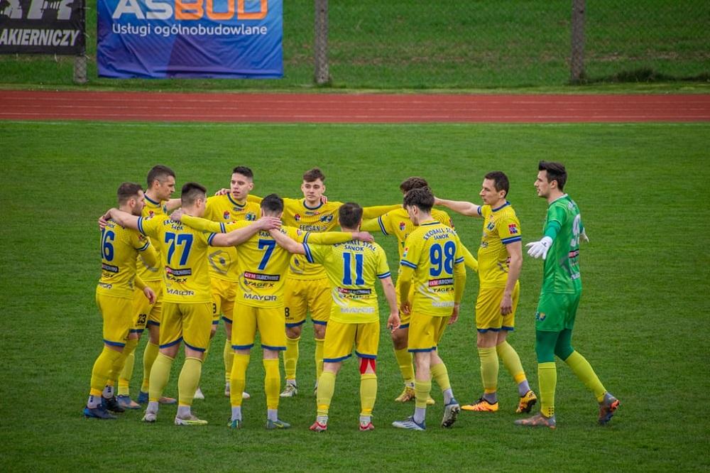 W 66. minucie padła trzecia bramka dla sanoczan. Z dystansu w poprzeczkę uderzył Kacper Słysz, przewrotką dobijał Dawid Czyrny, bramkarz gości obronił jego uderzenie, natomiast nie miał już szans przy kolejnej dobitce, tym razem Łukasza Tabisza.